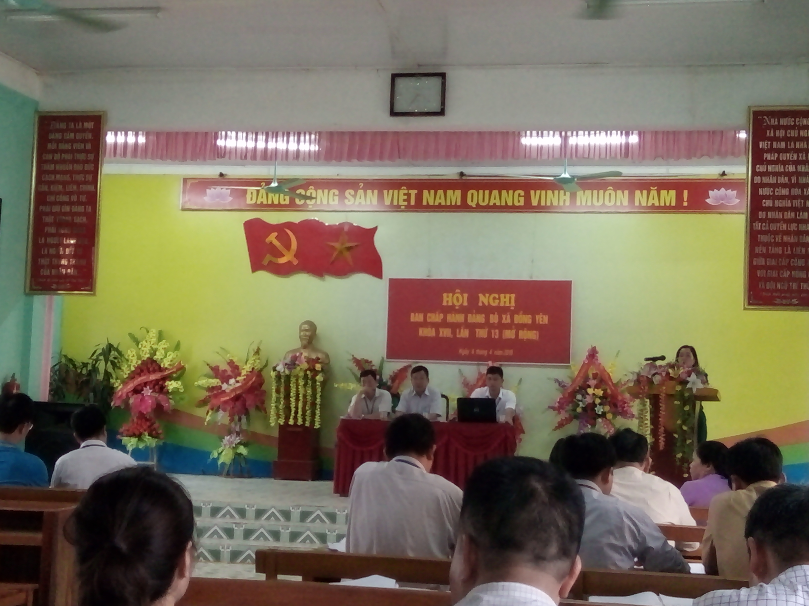 Ngày 04/4/2018 BCH Đảng bộ xã Đồng Yên tổ chức Hội nghị lần thứ 13 (Mở rộng), tới dự Hội nghị có đồng chí Khổng Mỹ Hạnh – UV BCH Đảng bộ huyện, CT. Hội LHPN huyện Bắc Quang, các Đ/c UV BCH Đảng bộ xã, cán bộ công chức xã, bí thư, phó bí thư các chi bộ trực thuộc.